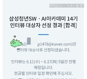 마지막으로 1차 합격한 사진을 남기며 다음 싸피 15기 분들도 합격하셨으면 좋겠습니다.